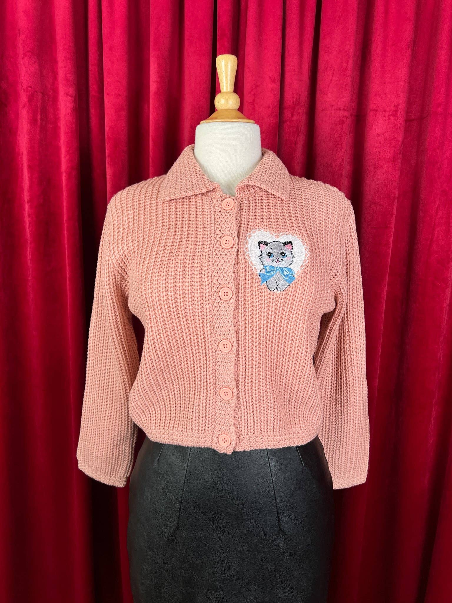 Dreamy Kitten Collared Cropped Sweater in Peach