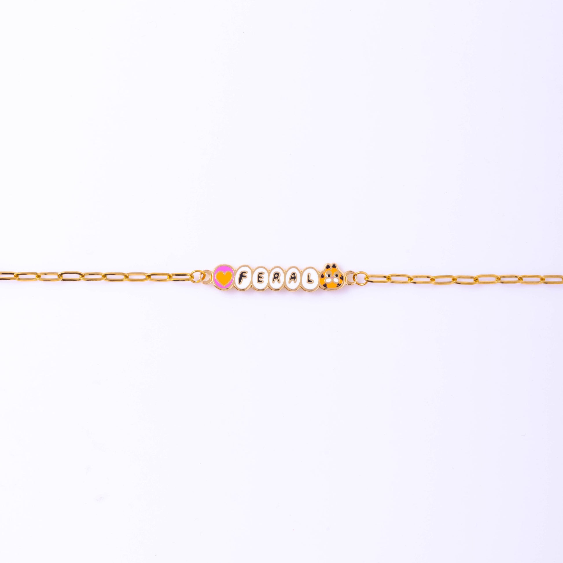 These delicate bracelets with a message are the newest addition to our signature enamel gold-gilt line of jewelry. Lead & nickel free. 8” Stainless Steel Link Chain Charm centered on 1st 7”
